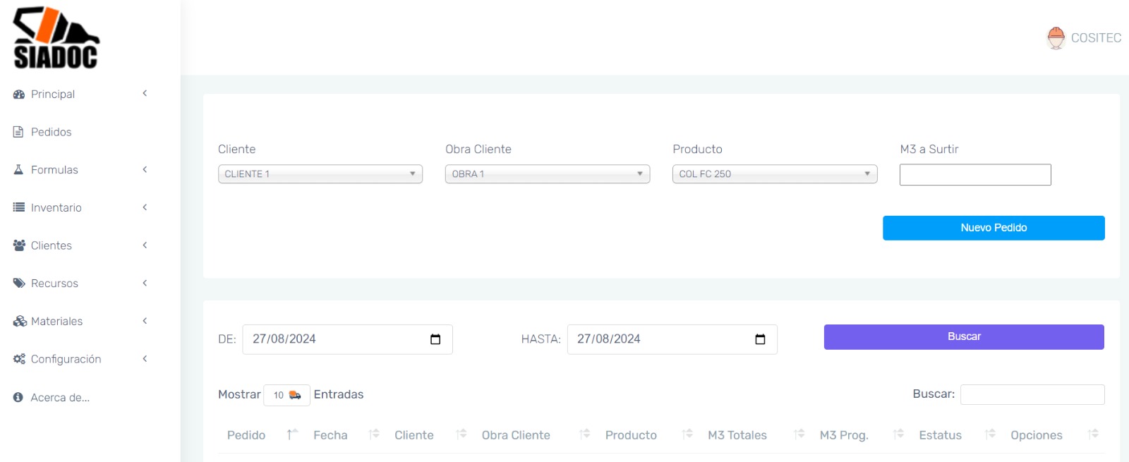 Realiza pedidos desde SIADOC WEB y gestiona fórmulas por planta.