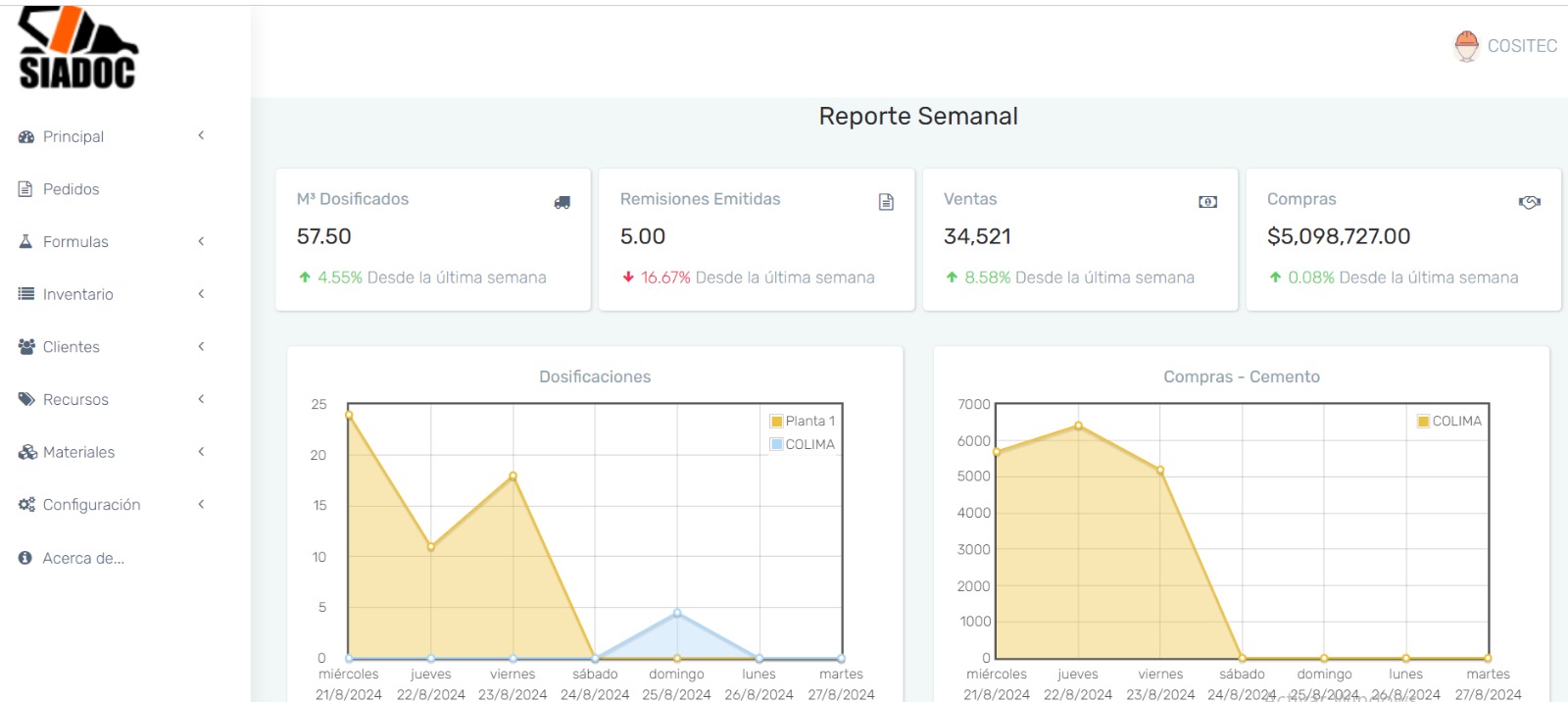 El software SIADOC fue desarrollado en 2013 utilizando tecnología C#.net, evolucionando con la experiencia y necesidades de los clientes. Ahora es una herramienta poderosa para la dosificación precisa de concreto, desde la captura de datos del PLC hasta la generación de reportes automatizados.